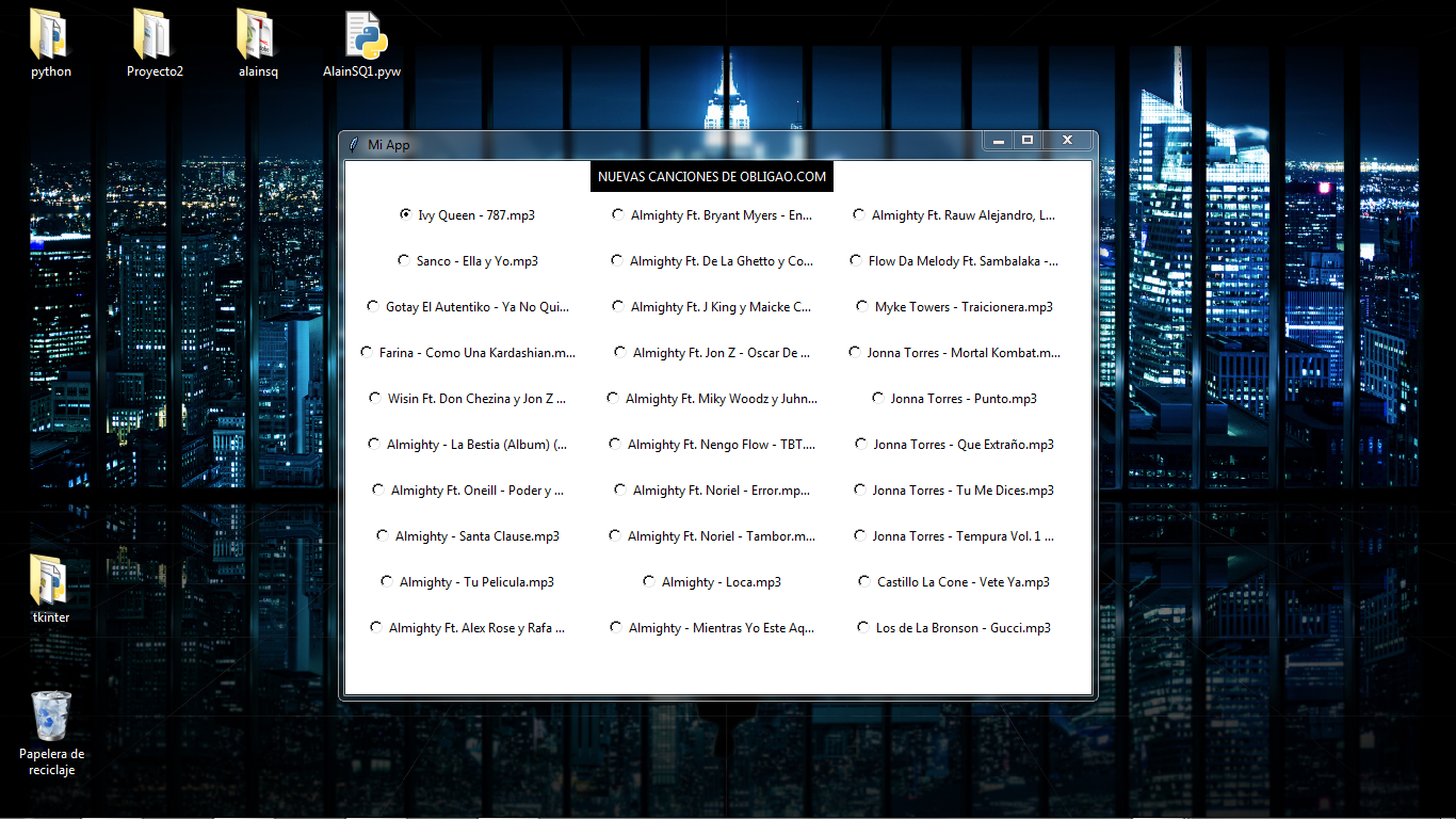 lb=Label(w3,text=»NUEVAS CANCIONES DEOBLIGAO.COM»,bg=»black»,fg=»white», padx=5, pady=5)